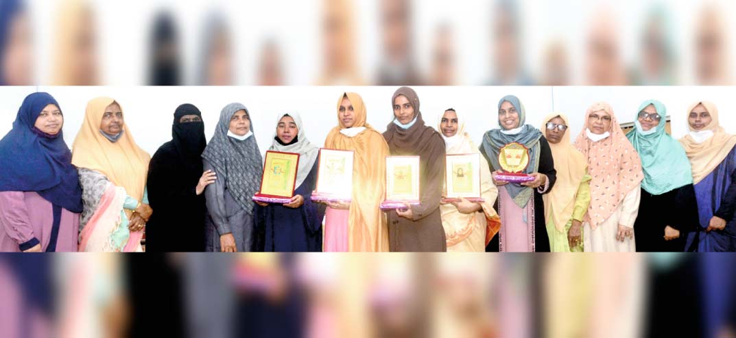 ഒന്നാം റാങ്ക് ജേതാക്കളായ കെ.കെ. റുക്സാന (മങ്കട), ഫർസാന സനീം (പൊന്നാനി), ജദീറ (യൂനിവേഴ്സിറ്റി), വി. റംല (മങ്കട), രണ്ടാം റാങ്ക് നേടിയ ആരിഫ (എടപ്പാൾ) തുടങ്ങിയവർക്ക് വനിത വിഭാഗം സംസ്ഥാന ജനസേവന കൺവീനർ പി. ലൈല, പി. സുബൈദ തുടങ്ങിയവർ അവാർഡ് ദാനം നിർവഹിച്ചു. വനിത വിഭാഗം ജില്ല പ്രസിഡൻറ് പി. ഫാത്തിമ അധ്യക്ഷത വഹിച്ചു. തംഹീദുൽ മർഅ ജില്ല കോഓഡിനേറ്റർ വി. ആസിയ സ്വാഗതവും വനിത വിഭാഗം ജില്ല ജനറൽ സെക്രട്ടറി മുഹ്സിന ജഹാൻ നന്ദിയും പറഞ്ഞു. ഖദീജ ഹൈദർ ഖുർആൻ പാരായണം നിർവഹിച്ചു.