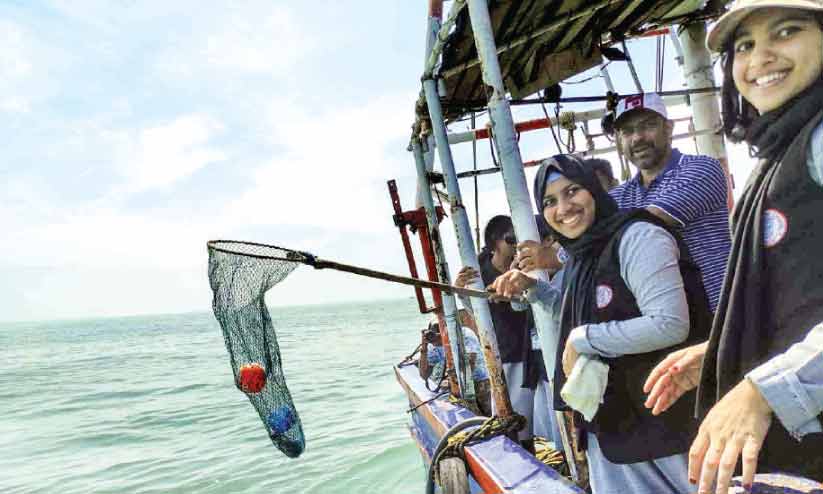 കടൽ പ്ലാസ്റ്റിക്കുകളും ഉപരിതലത്തിൽ പൊങ്ങിക്കിടക്കുന്ന അനാവശ്യ മത്സ്യബന്ധന വലകളും നീക്കാൻ പൊന്നാനി എം.ഇ.എസ് കോളജിലെ ഫിഷറീസ് ആൻഡ് അക്വാകൾച്ചർ വിഭാഗം വിദ്യാർഥികളും അധ്യാപകരും ചേർന്നാണ് നേതൃത്വം നൽകിയത്.