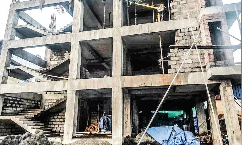 ഗ്രൗണ്ട് ഫ്ലോറിന് പുറമെ രണ്ട് നിലകളുടെ നിർമാണം പൂർത്തിയായി.