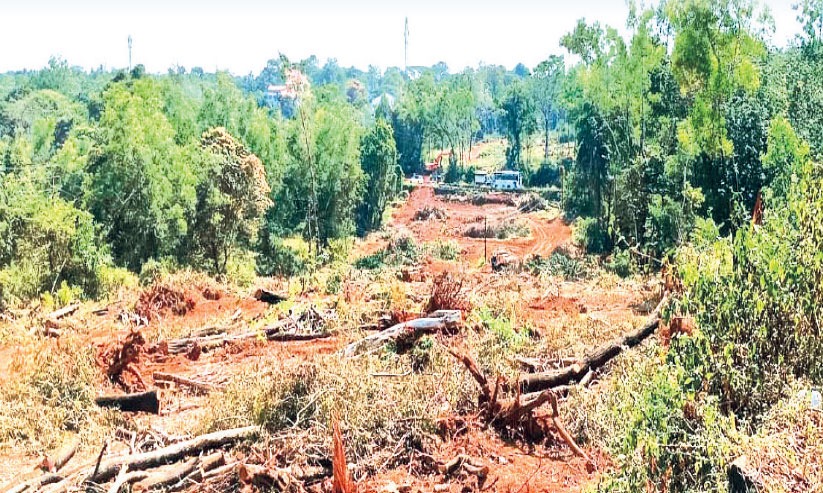 ഇവിടങ്ങളിലെ മരങ്ങൾ ഉൾപ്പെടെ മുറിച്ചുമാറ്റിയിട്ടുണ്ട്. ഇത്തരത്തിൽ മുറിച്ചു മാറ്റിയ മരങ്ങൾ ദേശീയപാതയോരത്ത് തന്നെ കൂട്ടി ഇട്ടതും ഭീഷണിയാണ്. തേഞ്ഞിപ്പലം പൊലീസ് സ്റ്റേഷൻ സമീപത്തെ കൊടും വളവ്, ഇടിമുഴിക്കൽ സ്പിന്നിങ് മിൽ കഴിഞ്ഞുള്ള വളവ് തുടങ്ങി വിവിധ ഭാഗങ്ങളിൽ പുതിയ റോഡ് വെട്ടി ഉണ്ടാക്കുന്ന ജോലികളാണ് പുരോഗമിക്കുന്നത്. പ്രധാന സ്ഥലങ്ങളിലെ മരങ്ങൾ പൂർണമായും മുറിച്ചുമാറ്റി. പലയിടങ്ങളും തിരിച്ചറിയാൻ പറ്റാത്ത വിധം മാറി. കോഹിനൂർ ഗ്രൗണ്ടിലും ദേശീയപാത അതോറിറ്റിയുടെ പാണമ്പ്രയിലെ സ്ഥലത്തുമാണ് നിർമാണ സാമഗ്രികൾ സൂക്ഷിക്കുന്നത്. ഈ കേന്ദ്രങ്ങൾ പ്രവർത്തനം തുടങ്ങിയിട്ട് രണ്ട് മാസത്തോളമായി. കൂറ്റൻ യന്ത്രങ്ങൾ സൂക്ഷിച്ചിരിക്കുന്നത് പാണമ്പ്രയിലാണ്.