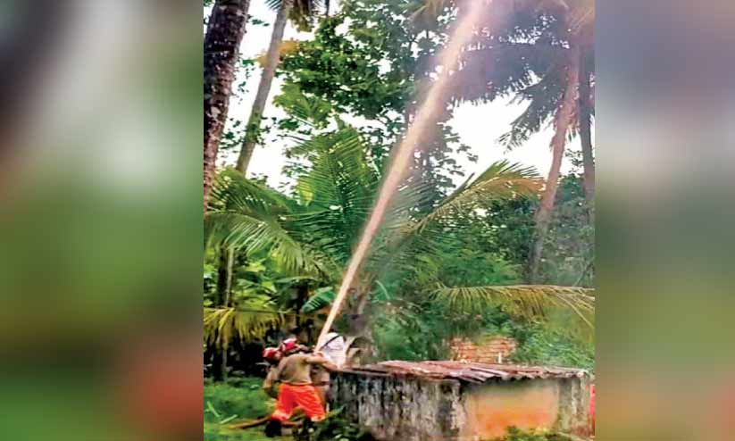 മിന്നലിൽ വീടിന് നാശം; തെങ്ങിന് തീപിടിച്ചു