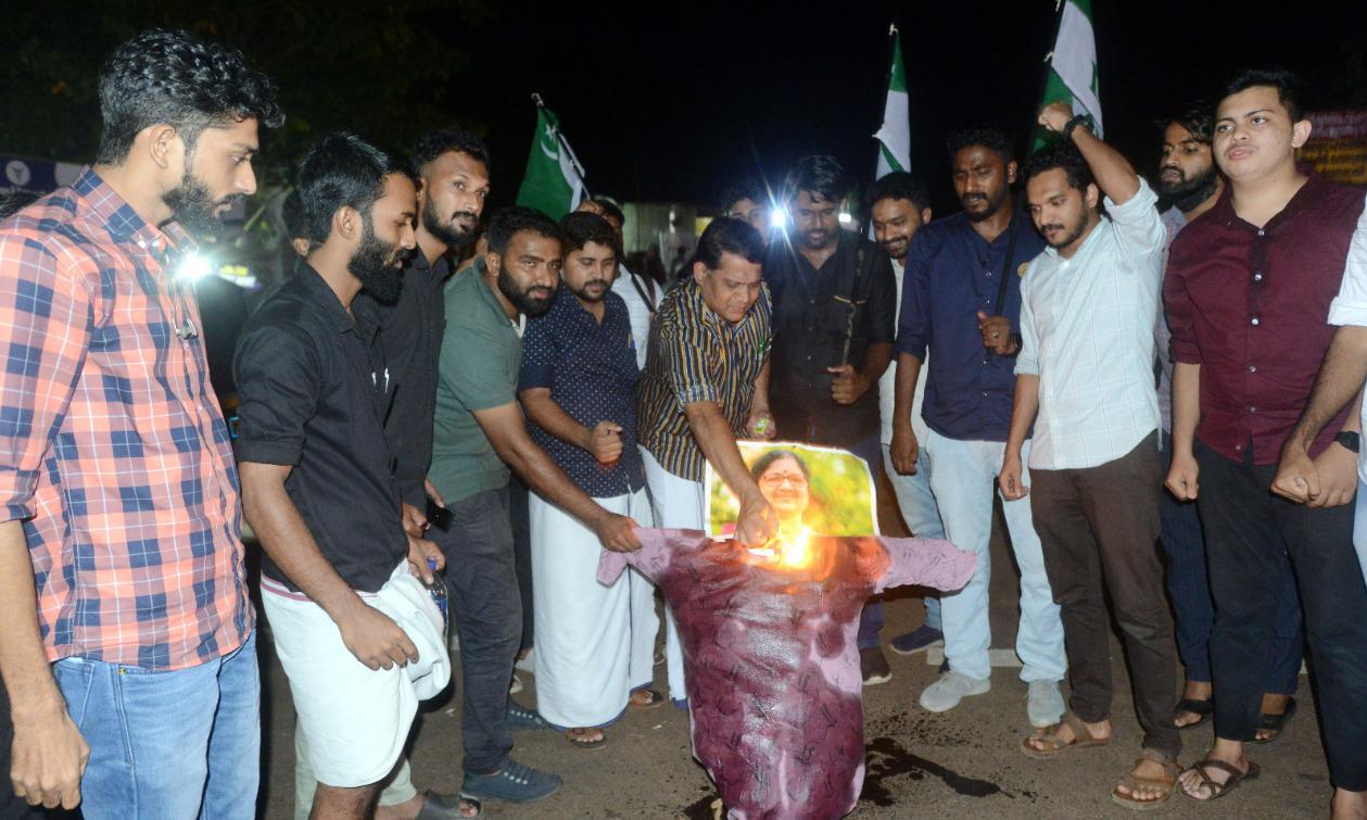 സെൻട്രൽ സെക്റ്റർ സ്കോളർഷിപ്പിൽ മുസ്ലിം വിഭാഗത്തെ ഒഴിവാക്കി; ഉന്നത വിദ്യാഭ്യാസ മന്ത്രിയുടെ കോലം കത്തിച്ച് എം.എസ്.എഫ്