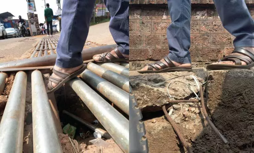 പൈപ്പ് തകർന്നിട്ട് ദിവസങ്ങൾ പിന്നിട്ടു. എന്നിട്ടും അധികാരികൾ തിരിഞ്ഞുനോക്കിയിട്ടില്ല. കുട്ടികൾ ഈ കുഴിയിൽ വീണാൽ വലിയ അപകടം ഉണ്ടാകും. ദിനേനെയെന്നോണം ഒട്ടേറെ പൊതുപരിപാടികൾ നടക്കുന്ന കുന്നുമ്മലിലെ നഗരസഭ ടൗൺഹാളിന് മുന്നിലും നടപ്പാത തകർന്നുകിടക്കുകയാണ്. നടപ്പാതയിലെ സ്ലാബിന്റെ കമ്പി അപകടകരമായ രീതിയിൽ പുറത്തേക്ക് തള്ളിനിൽക്കുകയാണ്. ഇതുകാണാതെ നടക്കുന്നവരുടെ കാലുകൾ കമ്പിയിൽ തട്ടിയാൽ മുറിയുമെന്നുറപ്പാണ്.