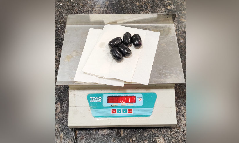 സ്വർണം കാപ്സൂൾ രൂപത്തിലാക്കി ശരീരത്തിലൊളിപ്പിച്ചു കടത്താനായിരുന്നു ശ്രമം. ഷാർജയിൽനിന്നുള്ള എയർ അറേബ്യ വിമാനത്തിലാണ് ഇയാൾ എത്തിയത്. ഡെപ്യൂട്ടി കമീഷണർ ടി.എ. കിരൺ, സൂപ്രണ്ടുമാരായ രഞ്ജി വില്യംസ്, ഗഗൻദീപ് രാജ്, ഇൻസ്പെക്ടർമാരായ സുമിത് നെഹ്റ, എ. വേലൂരി നായിക്, കെ. രാജീവ്, സുമൻ ഗോദ്ര, വി.സി. മിനിമോൾ, ഹവിൽദാർ ചന്ദ്രൻ എന്നിവരടങ്ങിയ സംഘമാണ് സ്വർണം പിടിച്ചത്.