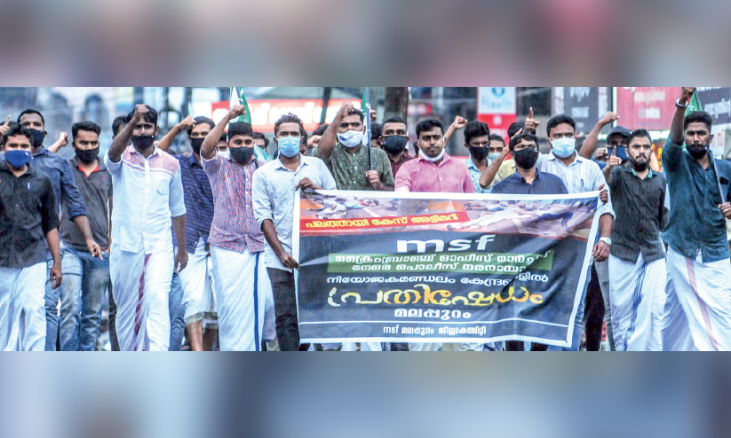 മലപ്പുറം പാസ്പോർട്ട് സേവ ഓഫിസ് പരിസരത്ത് നിന്ന് ആരംഭിച്ച പ്രതിഷേധ പ്രകടനം കുന്നുമ്മലിൽ സമാപിച്ചു. ചടങ്ങിൽ എം.എസ്.എഫ് ജില്ല പ്രസിഡൻറ് കബീർ മുതുപറമ്പ് അധ്യക്ഷത വഹിച്ചു. സംസ്ഥാന വൈസ് പ്രസിഡൻറ് ഫാരിസ് പൂക്കോട്ടൂർ മുഖ്യപ്രഭാഷണം നത്തി.