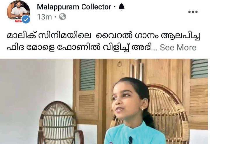 text_fieldsഹിദയുടെ ഫോട്ടോ ജില്ല കലക്ടറുടെ ഫേസ്ബുക്ക്