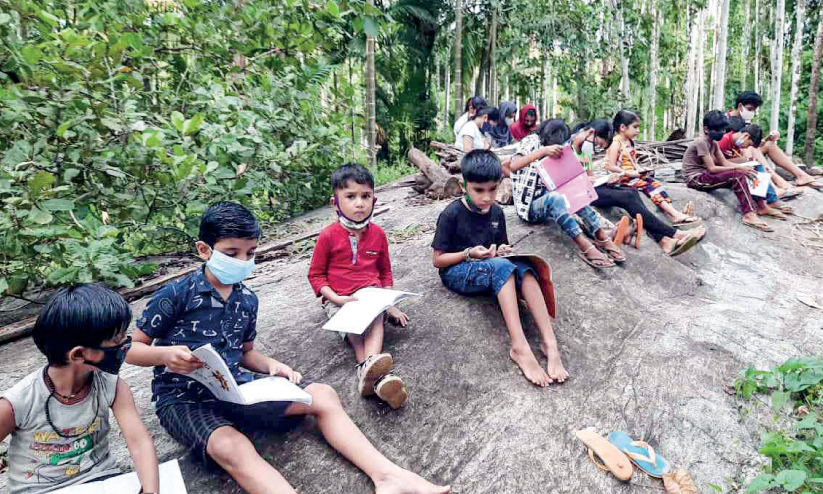 text_fieldsഅഞ്ചച്ചവിടി പുളിയങ്കല്ലിൽ പാറപ്പുറത്തിരുന്ന് പഠിക്കുന്ന വിദ്യാർഥികൾ