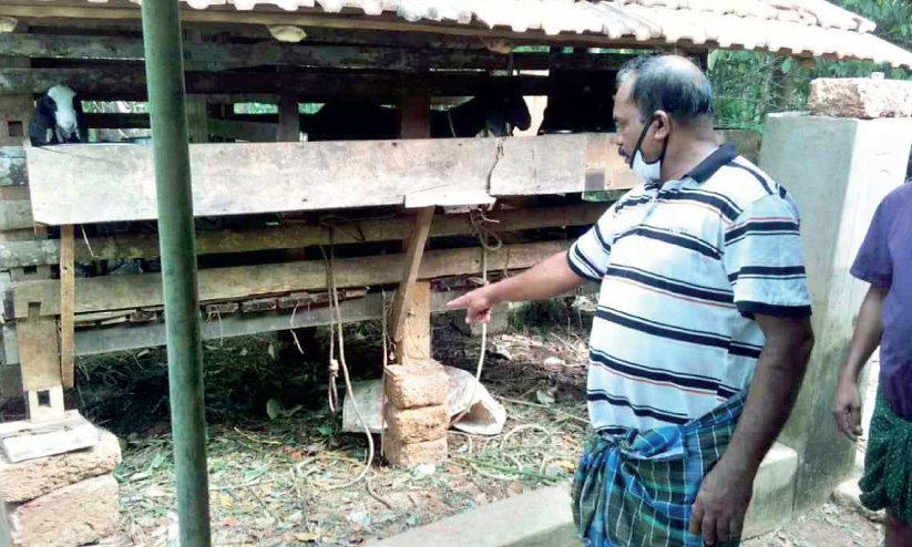 കൂടിന് സമീപം രക്തം തളംകെട്ടി കിടക്കുന്നുണ്ട്. പരിശോധനയിൽ കൂട്ടില്നിന്ന് ആടിനെ വലിച്ചെടുത്തതായുള്ള പാടുകളും മനുഷ്യരുടെ കാല്പാടും കണ്ടെത്തി. സമീപത്തെ പറമ്പിലൂടെ കൊണ്ടുപോയി വാഹനത്തില് കയറ്റിയ പാടുകളുമുണ്ടായിരുന്നു.