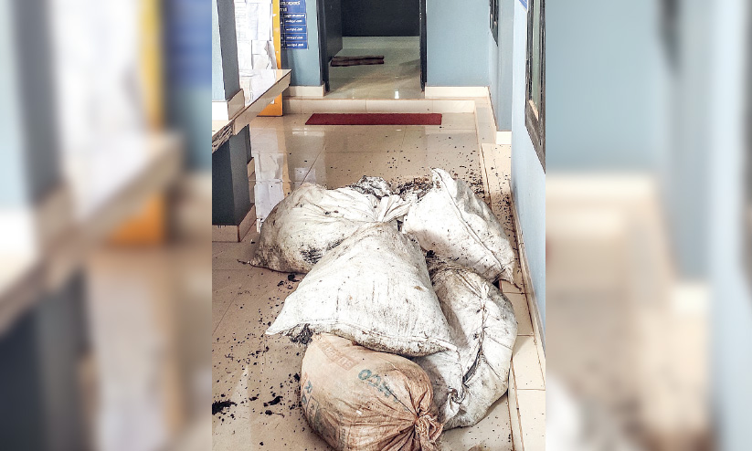 പ്രസിഡൻറിെൻറയും സെക്രട്ടറിയുടെയും ഓഫിസ് മുറികളിലേക്കുള്ള വഴിയടച്ച് എട്ട് ചാക്കുകളാണ് തള്ളിയത്. ഈ സമയത്ത് ജീവനക്കാർ ഉൾപ്പെടെ നിരവധി പേർ ഓഫിസിലും പരിസരത്തുമുണ്ടായിരുന്നു. ഡി.വൈ.എഫ്.ഐ ജില്ല കമ്മിറ്റി അംഗം ഇ. ലിനീഷ്, മേഖല പ്രസിഡൻറ് ഫർഹാൻ ഫാറൂഖ്, സെക്രട്ടറി സി. അനസ്, ടി. ആശിഖ്, എം. സജാദ്, വിപിൻ എന്നിവർ നേതൃത്വം നൽകി.