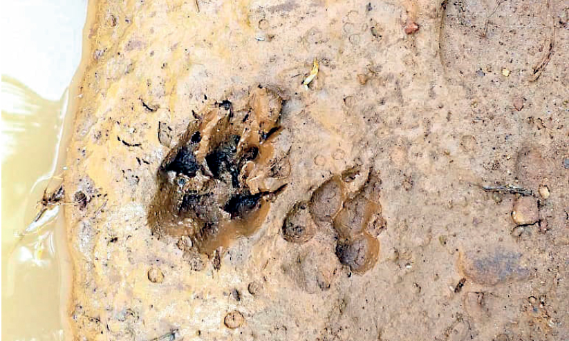 text_fieldsവലമ്പൂർ വലിയപറമ്പിൽ കണ്ടെത്തിയ പുലിയുടേതെന്ന് കരുതുന്ന കാൽപാടുകൾ