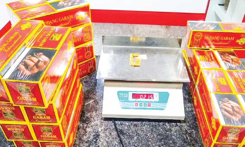 സ്വർണത്തിന് 81 ലക്ഷവും സിഗരറ്റിന് ഒരുലക്ഷം രൂപയുമാണ് വില. ദുബൈയിൽനിന്നുള്ള എയർഇന്ത്യ എക്സ്പ്രസിലെത്തിയ മലപ്പുറം സ്വദേശി അനൂപിൽനിന്ന് ശരീരത്തിലൊളിപ്പിച്ച് കടത്താൻ ശ്രമിച്ച 739 ഗ്രാം സ്വർണവും ഇതേ വിമാനത്തിലെത്തിയ കാസർകോട് സ്വദേശി മജീദ് അബ്ദുൽ ഖാദറിൽനിന്ന് 175 ഗ്രാം സ്വർണവും 5000 സിഗരറ്റും പിടികൂടി. ദുബൈയിൽനിന്നുള്ള സ്പൈസ് ജെറ്റിലെത്തിയ കാസർകോട് മൂളിയാർ സ്വദേശി മുഹമ്മദ് ഫൈസിൽനിന്ന് വസ്ത്രത്തിനുള്ളിൽ കടത്താൻശ്രമിച്ച 215 ഗ്രാം സ്വർണവും ബാഗേജിൽ ഒളിപ്പിച്ച 6000 നിരോധിത സിഗരറ്റും പിടിച്ചെടുത്തു.