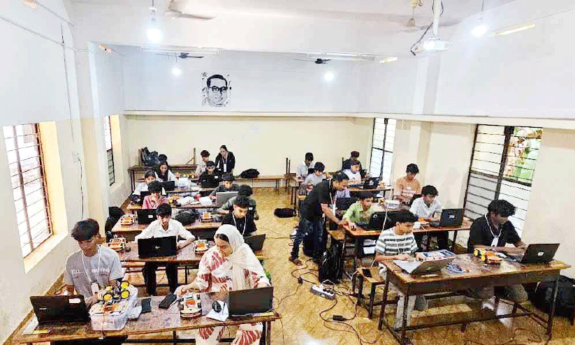 ജില്ല ക്യാമ്പിൽ റോവർ റോബോട്ടുകൾ നിർമിക്കുന്ന കുട്ടികൾ