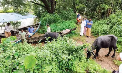 പുഴയിൽ അഴിച്ചുവിട്ട കന്നുകാലികളാണ് കുടുങ്ങുന്നത്