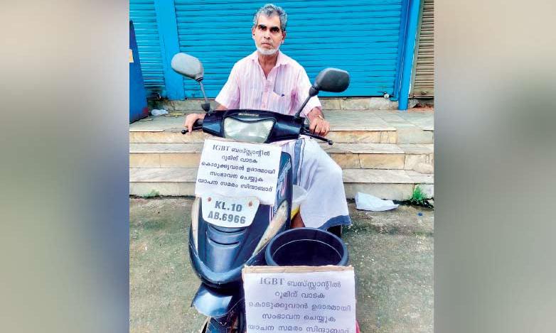 കച്ചേരിപ്പടി സ്റ്റാൻഡിൽ ആളനക്കമില്ല; വാടക നൽകാൻ യാചന സമരവുമായി വ്യാപാരി