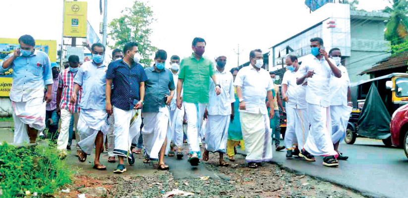 മഞ്ചേരിയിലെ റോഡിെൻറ ശോച്യാവസ്ഥ പരിശോധിക്കാനെത്തിയപ്പോൾ