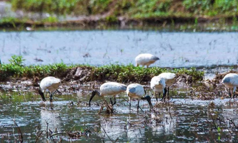 അരിവാൾക്കൊക്കന്മാരുടെ വിരുന്ന്; വയലുകളിൽ സുന്ദരകാഴ്ച