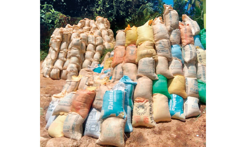 കൂട്ടിയിട്ട മണൽചാക്കുകൾ