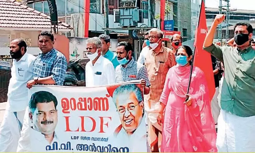 പി.വി. അൻവറിന്റെ സ്ഥാനാർഥി പ്രഖ്യാപനം; നിലമ്പൂരിൽ എൽ.ഡി.എഫ് ആഹ്ലാദ പ്രകടനം
