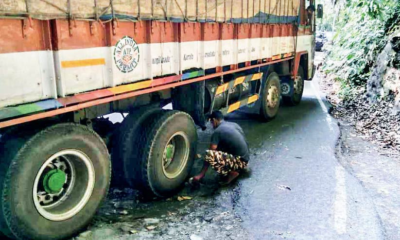 കേരളത്തിൽനിന്ന് കർണാടകയിലേക്ക് ചരക്കുകളുമായി പോവുന്ന ലോറികളാണ് റോഡിെൻറ വീതികുറഞ്ഞ ഭാഗത്ത് കുഴിയിൽ കുടുങ്ങിയത്. റോഡ് അപ്പാടെ അടച്ച് ലോറികൾ കുടുങ്ങിക്കിടന്നതിനാൽ മറ്റു വാഹനങ്ങൾക്ക് കടന്നുപോവാനായില്ല. രണ്ട് സമയത്തും ഒരു മണിക്കൂർ വീതം ഗതാഗതം മുടങ്ങി.