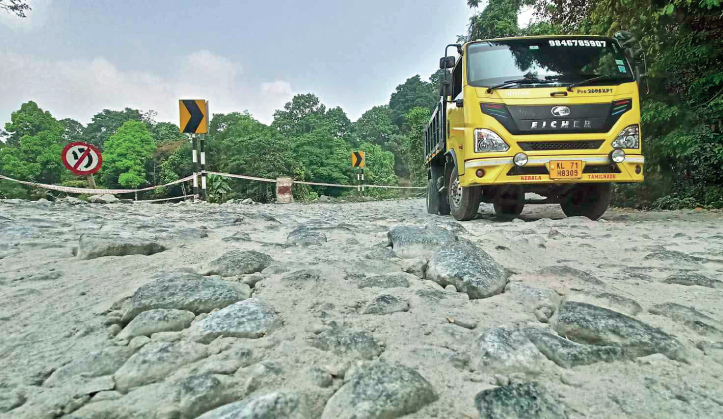 തകർന്ന റോഡ് ഭാഗത്ത് വാഹനാപകടം തുടരുകയാണ്. ഇന്നലെയും ബൈക്ക് മറിഞ്ഞ് യാത്രകാരായ ദമ്പതികൾക്ക് പരിക്കേറ്റു. ഇവിടെ റോഡിൽ പതിച്ച കല്ലുകൾ പൊതിനിൽക്കുന്നത് കാരണം ചെറുവാഹനങ്ങൾ അപകടത്തിൽപ്പെടുകയാണ്. ചരക്ക് വാഹനങ്ങളുടെ ടയർ പഞ്ചറാകുന്നതും പതിവാണ്.