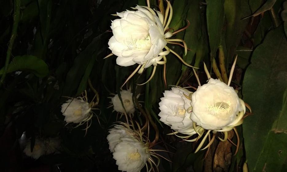 വളരെ അപൂർവമായാണ് ഇത്രയധികം പൂക്കൾ ഒന്നിച്ചു വിരിഞ്ഞു കാണാറുള്ളത്. രാത്രിയിൽ പുഷ്പിച്ചു സുഗന്ധം പരത്തുകയും സൂര്യോദയത്തിനു മുമ്പേ വാടിപോകുന്നതും കൊണ്ടാണ് നിശാഗന്ധി എന്ന പേരിൽ അറിയപ്പെടുന്നത്.
