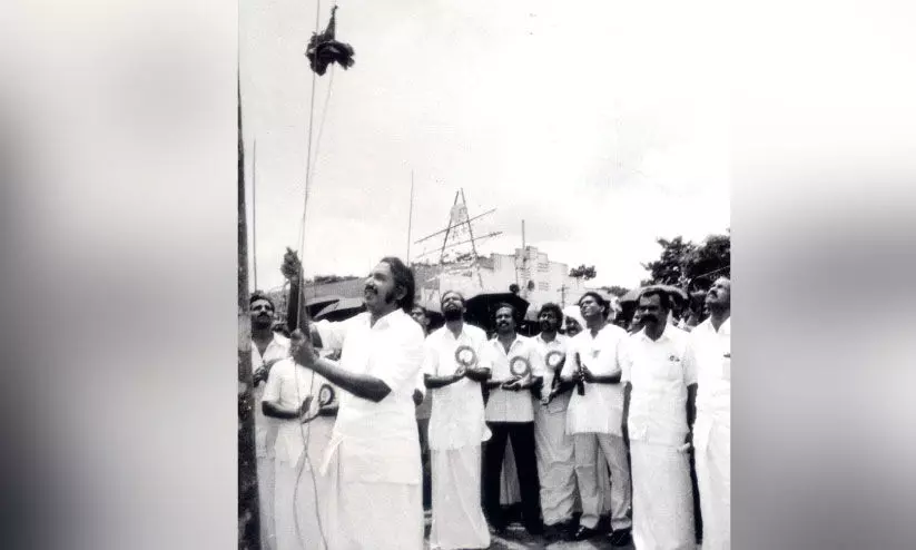 സമ്മേളനത്തിൽ ഉമ്മൻ ചാണ്ടി പതാക ഉയർത്തുന്നു