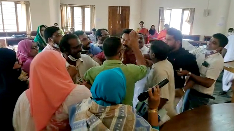 ബജറ്റ് സമ്മേളനത്തിനിടെ പരപ്പനങ്ങാടി നഗരസഭ ഭരണ സമിതി യോഗത്തിൽ കയ്യാങ്കളി