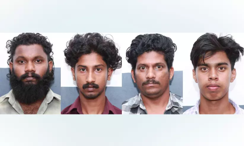 ആനമങ്ങാട് ചോലക്കൽ ജയരാജ് (31), ചിറ്റോടിയിൽ ജിഷ്ണു (26), ആനമങ്ങാട് വടക്കൻ സിറ്റി സ്വദേശി മാങ്ങമ്പറ്റ കൃഷ്ണകുമാർ (37), കാറൽമണ്ണ സ്വദേശി മുക്കിൽ സുജിത്ത് (21) എന്നിവരെയാണ് ഇൻസ്പെക്ടർ സുമേഷ് സുധാകരൻ അറസ്റ്റ് ചെയ്തത്. ഈമാസം രണ്ട്, മൂന്ന് തീയതികളിലാണ് കേസിനാസ്പദമായ സംഭവം.