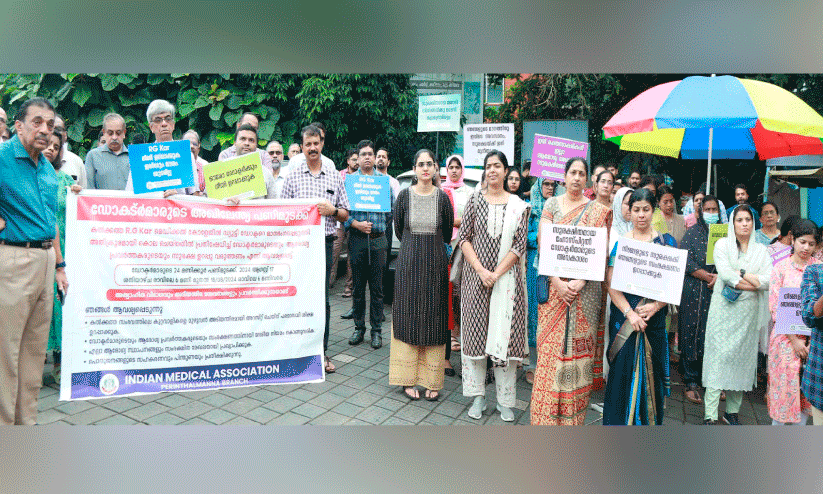 പെരിന്തൽമണ്ണ: കൊൽക്കത്തയിലെ യുവഡോക്ടറെ അതിക്രൂരമായി കൊലപ്പെടുത്തിയ സംഭവത്തിൽ ഇന്ത്യൻ മെഡിക്കൽ അസോസിയേഷൻ (ഐ.എം.എ) പ്രതിഷേധ പ്രകടനം നടത്തി. പെരിന്തൽമണ്ണനടന്ന പ്രകടനം ജില്ല ആശുപത്രി അങ്കണത്തിൽ ഐ.എം.എ മുൻ ദേശീയ വൈസ് പ്രസിഡന്റ് ഡോ. വി.യു. സീതി ഉദ്ഘാടനം ചെയ്തു. ഡോ. സാമുവൽ കോശി, ദേശീയ ജോയന്റ് സെക്രട്ടറി ഡോ. കെ.വി. ജയകൃഷ്ണൻ എന്നിവർ ചേർന്ന് ഫ്ലാഗ് ഹോസ്റ്റ് ചെയ്തു.