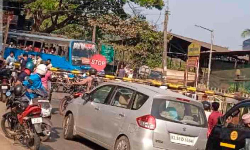 റെയിൽവേ ഗേറ്റ് തുറക്കാനായില്ല; ചെറുകരയിൽ ഒരു മണിക്കൂർ ഗതാഗതം സ്തംഭിച്ചു