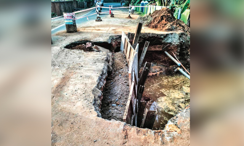 പെരുവഴികുളത്ത് കലുങ്ക് നിർമാണത്തിനിടെ റോഡ് തകർന്നു; ഗതാഗതം തടസ്സപ്പെട്ടു