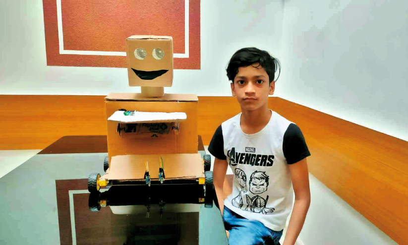 text_fieldsസ്വയം വികസിപ്പിച്ചെടുത്ത ഫുഡ് സെർവിങ്റോബോർട്ടുമായി മുഹമ്മദ് ഫാദിൽ