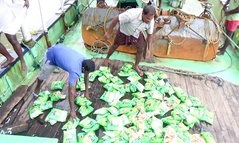 മത്സ്യത്തൊഴിലാളികൾക്കുവേണ്ടി നടത്തിയ തിരച്ചിലിനിടെ ഹാൻസ് ചാക്കുകൾ കണ്ടെത്തി