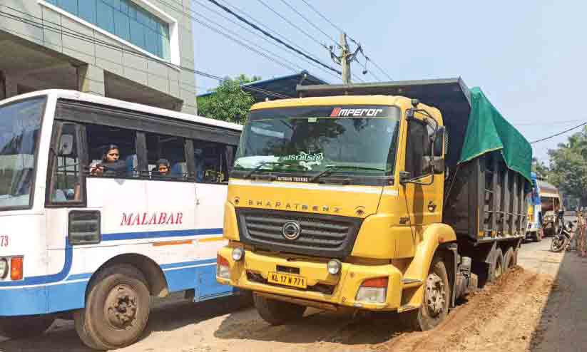 മലപ്പുറത്തുനിന്ന് കരിങ്കല്ലുമായി എറണാകുളത്തേക്ക് പോവുകയായിരുന്ന ലോറിയാണ് തിങ്കളാഴ്ച കുഴിയിൽ പതിച്ചത്. ലോറിയുടെ ചക്രങ്ങൾ പൂർണമായും കുഴിയിൽ വീണതോടെ നടുറോഡിൽ ലോറി കുടുങ്ങി. ഇത് ഏറെ നേരം ഗതാഗതസ്തംഭനത്തിന് ഇടയാക്കി.