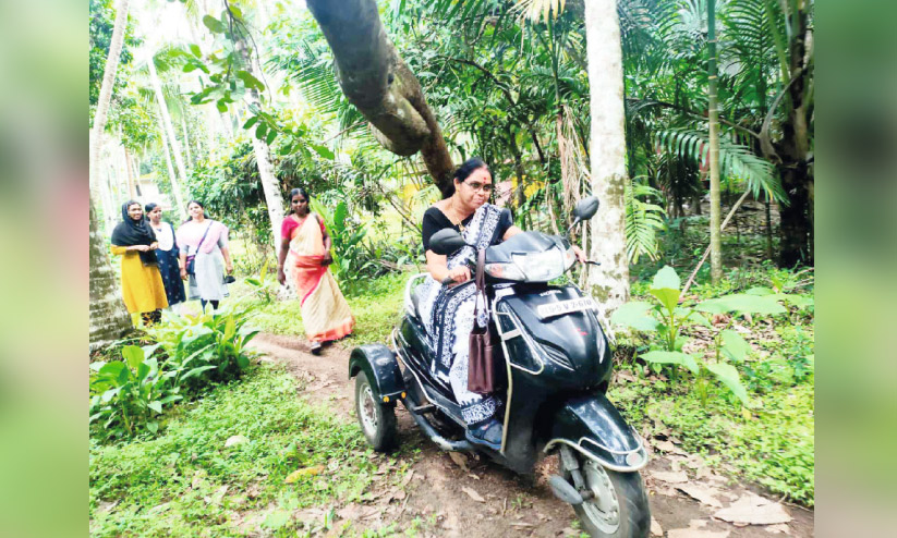 text_fieldsമംഗലം ജി.എം.എൽ.പി സ്കൂളിലേക്ക് മുച്ചക്ര വാഹനത്തിലെത്തുന്ന പ്രധാനാധ്യാപിക കെ. പ്രകാശിനി