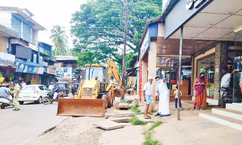 പട്ടർനടക്കാവിൽ റോഡ് നവീകരണം; റോഡിലേക്കിറങ്ങിയ കൈയേറ്റങ്ങൾ നീക്കിത്തുടങ്ങി