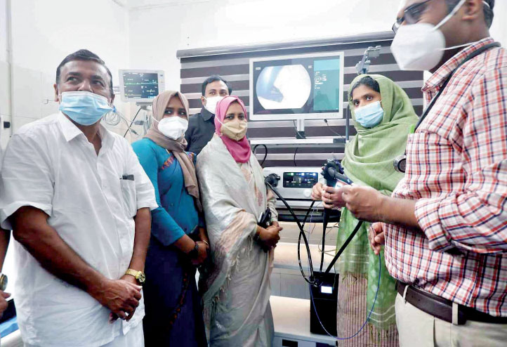 ബ്ലൂ ലൈറ്റ് ഇമേജിങ്, ലിങ്ക്ഡ് കളര് ഇമേജിങ് എന്നീ നൂതന സംവിധാനങ്ങളോടു കൂടിയതാണ് എന്ഡോസ്കോപ്പി മെഷീന്. ഉദര സംബന്ധമായ കാന്സര് നിര്ണയം, ബയോപ്സിക്കായുള്ള സാംപിള് ശേഖരണം, രക്തം ഛര്ദിക്കുന്നവര്ക്ക് ഉള്ളിലെ മുറിവ് കെട്ടാനുള്ള സംവിധാനം, വിഴുങ്ങിയ നാണയം പുറത്തെടുക്കല് തുടങ്ങിയവ ഈ മെഷീനിലൂടെ നടത്താനാകും. ഇതിനു പുറമേ കൊളണോസ്കോപ്പിയും ഫൈബ്രോസ്കാന് സംവിധാനവും ഇവിടെയുണ്ട്.