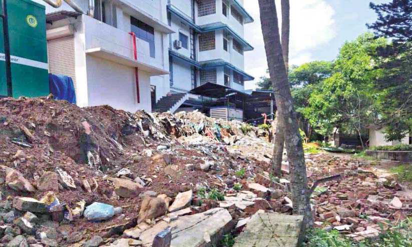 തിരൂർ ജില്ല ആശുപത്രിയുടെ മതിൽ വീണത് ബി.എസ്.എൻ.എൽ എക്സ്ചേഞ്ച് വളപ്പിലേക്ക്