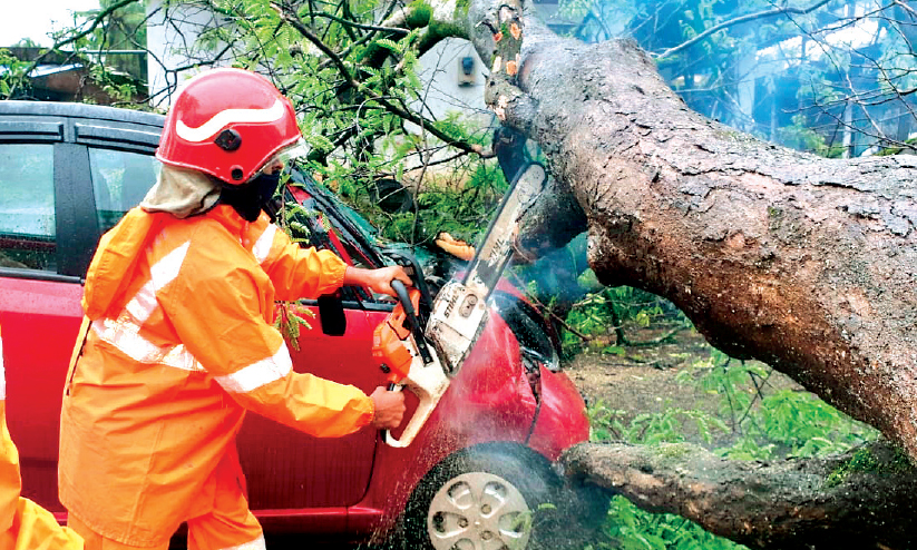 കാറിനു മുകളിൽ മരം വീണു; അകത്ത് കുടുങ്ങിയയാളെ രക്ഷപ്പെടുത്തി