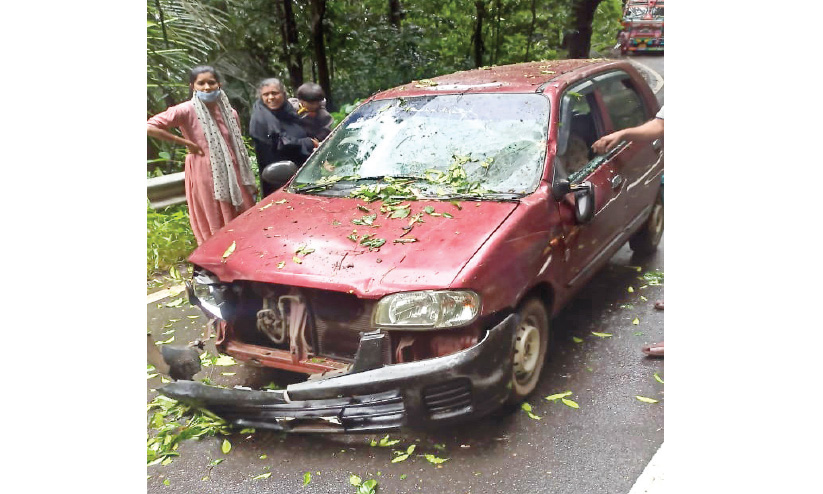 നാടുകാണി ചുരത്തിൽ കാറിനും ലോറിക്കും മുകളിൽ മരങ്ങൾ വീണു