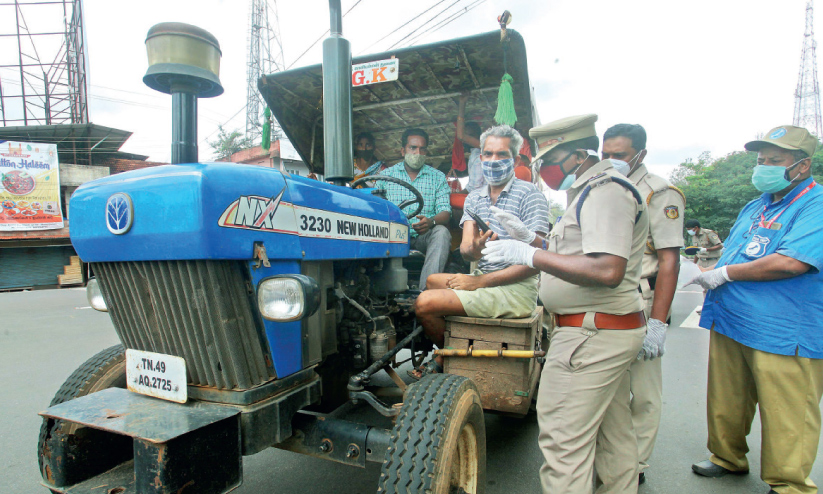 text_fieldsമലപ്പുറം കുന്നുമ്മലില് പരിശോധനക്കിടെ തലശ്ശേരിയില്നിന്ന് തമിഴ്നാട്ടിലേക്ക് ട്രാക്ടറില് പോകുന്ന തമിഴ് കുടുംബത്തിെൻറ യാത്രരേഖകള് പരിശോധിക്കുന്ന പൊലീസ്