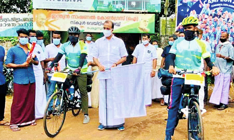 വളാഞ്ചേരി: സൈക്കിളിൽ നേപ്പാളിലേക്ക് യാത്ര ചെയ്യുന്ന സഹോദരങ്ങൾക്ക് യാത്രയയപ്പ് നൽകി. പേരശ്ശന്നൂർ വള്ളിക്കൊട്ടപറമ്പിൽ ഫൈസൽ ബാബു (36), നജ്മുദീൻ (19) എന്നിവരാണ് യാത്ര ആരംഭിച്ചത്. 'മനസ്സ് ശുദ്ധമാക്കുക, മണ്ണ് സുന്ദരമാക്കുക' എന്ന ആഹ്വാനവുമായാണ് യാത്ര ആരംഭിച്ചത്. കർണാടക, തെലുങ്കാന, മധ്യപ്രദേശ്, ഉത്തർപ്രദേശ് വഴിയാണ് യാത്ര.