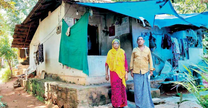 text_fieldsഇബ്രാഹീമും ഭാര്യയും തകർച്ച ഭീഷണിയിലായ വീടിനു മുന്നിൽ