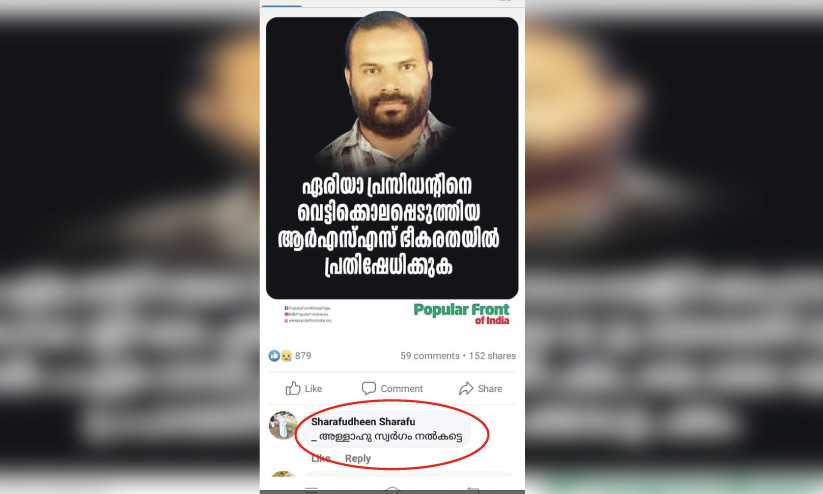 പോപുലർ ഫ്രണ്ടിന്റെ ഫേസ്ബുക്ക് പേജിൽ കമന്റ്; സി.പി.എം അംഗത്തിന് പരസ്യ ശാസന