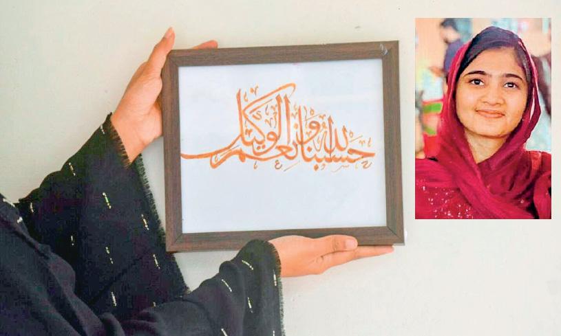 അറബി ലിപികൾ ആകര്ഷകവും സൗന്ദര്യാത്മകവുമായി വിന്യസിച്ച് മനോഹര രൂപങ്ങളാക്കി മാറ്റുന്ന വിദ്യയിൽ ഈ പെൺകുട്ടി ഏറെ വിജയിച്ചിരിക്കുന്നു. തമിഴ്നാട് നീലഗിരി ആർട്സ് ആൻഡ് സയൻസ് കോളജിൽ ബി.എ ഇംഗ്ലീഷ് ലിറ്ററേച്ചർ രണ്ടാം വർഷ വിദ്യാർഥിനിയാണ് കണ്ണമംഗലം എടക്കാപ്പറമ്പിൽ, ആലുങ്ങൽ അബ്ദുൽ റസാഖ്-ബുഷ്റ ദമ്പതികളുടെ മകളായ ആയിഷ നിദ.