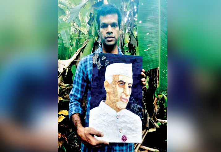 സുബ്രഹ്മണ്യൻ പതിവ് മുടക്കിയില്ല: ശിശുദിനത്തിന് വേറിട്ട നെഹ്റു ശിൽപം
