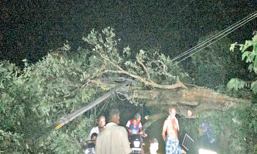 മുകളിൽ വീണ് ഗതാഗതം മുടങ്ങിയപ്പോൾ