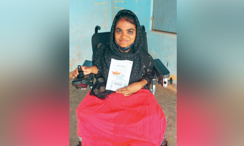text_fieldsഷാജിറ മേലേഴിയം തന്റെ പുസ്തകവുമായി വീല്ച്ചെയറില്