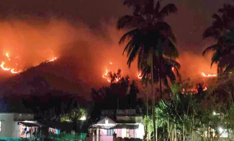 text_fieldsമുണ്ടൂർ: അത്യുഷ്ണം പിടിമുറക്കിയതോടെ ചുട് കാറ്റു വീശുന്നതിനിടയിൽ പൊരിയാനി വനമേഖലയിലും ചേറാട് മലയിലും അഗ്നിബാധ.നിരവധി ഇഴജന്തുക്കളും പക്ഷികളും തീ പടർന്നു വെന്തു ചത്തു. ഔഷധസസ്യങ്ങളും നശിച്ചു. മിക്കയിടങ്ങളിലും വൻ തോതിൽ കുറ്റിക്കാട് കത്തിനശിച്ചു. വനം വകുപ്പിന്റെ അധീനതയിലുള്ള പൊരിയാനി വനാതിർത്തിയിലും തൊട്ടടുത്ത കണിച്ചേരി അച്ചൻകുഞ്ഞിന്റെ റബർ തോട്ടത്തിലും കുറ്റിക്കാടിനും തീപിടിച്ചു.