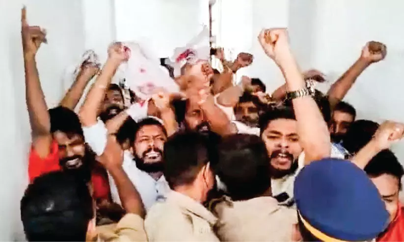 text_fieldsപാലക്കാട്: ഒപ്പ് വാങ്ങാനെത്തിയ യുവതിയോട് ശിരോവസ്ത്രം മാറ്റാന് ആവശ്യപ്പെട്ട നഗരസഭ സെക്രട്ടറിയുടെ ചുമതല വഹിക്കുന്ന റവന്യൂ ഓഫിസറുടെ നിലപാടിൽ പ്രതിഷേധിച്ച് സംഘടനകൾ പാലക്കാട് നഗരസഭ ഓഫിസിലേക്ക് മാർച്ച് നടത്തി. പാലക്കാട് മുനിസിപ്പല് കമ്മിറ്റിയുടെ നേതൃത്വത്തിലായിരുന്നു ഡി.വൈ.എഫ്.ഐ പ്രതിഷേധം. നഗരസഭ ഗേറ്റ് ചാടിക്കടന്ന പ്രവർത്തകർ സെക്രട്ടറിയുടെ ഓഫിസിനു മുന്നില് പ്രതിഷേധിച്ചു. പാലക്കാട് ബ്ലോക്ക് പ്രസിഡന്റ് ജെ. കൃഷ്ണപ്രസാദ്, ജോ. സെക്രട്ടറിമാരായ വി. വിനോദ്കുമാര്, മുഹമ്മദ് നാസിം, വൈസ് പ്രസിഡന്റ് ആന്റണി പ്രിന്സ്, ബ്ലോക്ക് കമ്മിറ്റി അംഗങ്ങളായ സഫ്ദര് ഷെറീഫ്, ടി.സി. അഭിജിത്ത്, കെ. അന്വര്, എ.എന്. അജിത്ത്, എസ്.എഫ്.ഐ ജില്ല സെക്രട്ടറി എസ്. വിപിന് എന്നിവര് പങ്കെടുത്തു. സൗത്ത് പൊലീസ് പ്രതിഷേധക്കാരെ അറസ്റ്റ് ചെയ്ത് നീക്കി. ഭാരവാഹികളടക്കം 12 പേര്ക്കെതിരെ സൗത്ത് പൊലീസ് കേസെടുത്തു.